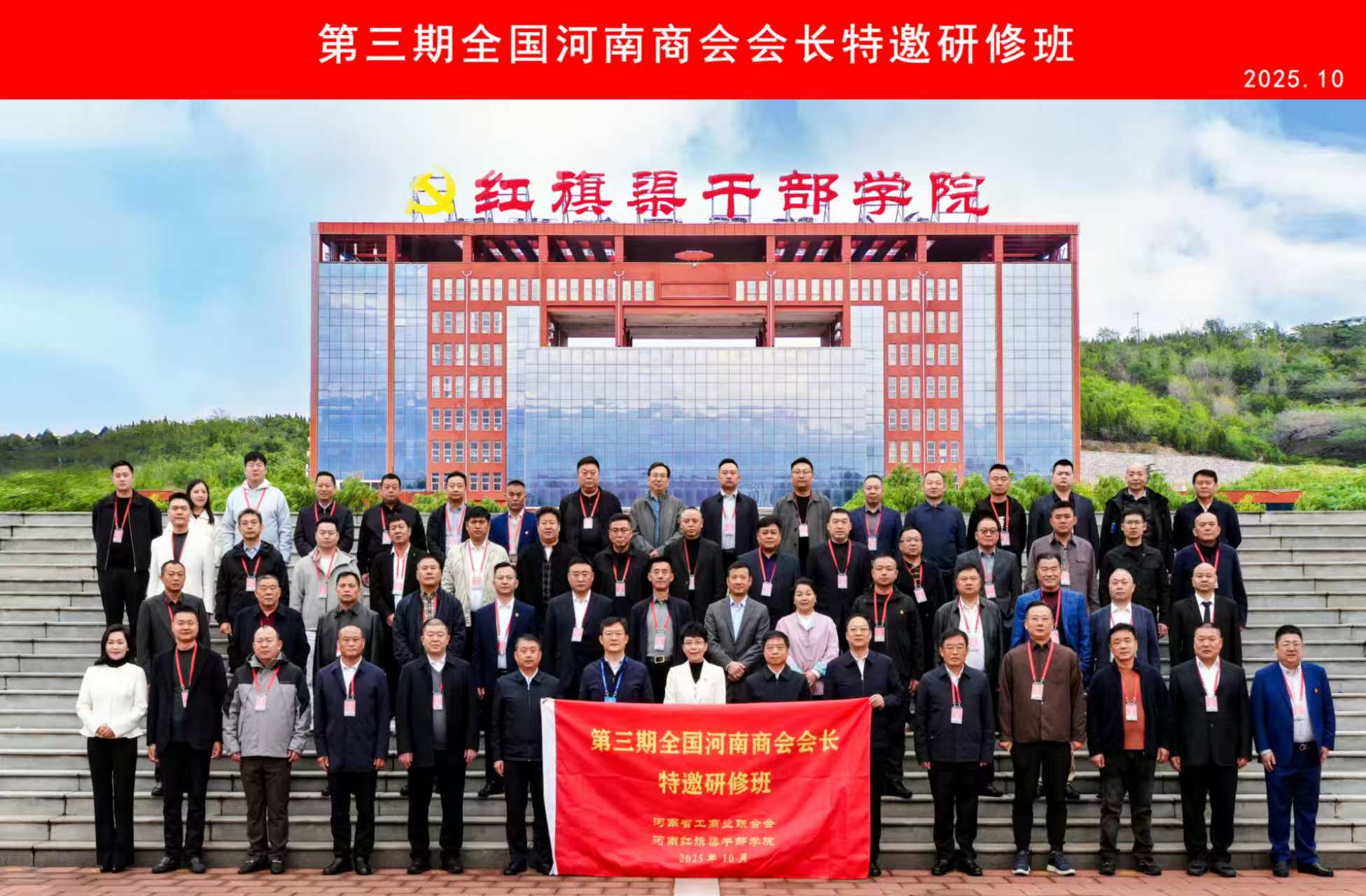 2025年10月19日,第三期全国河南商会会长特邀研修班在河南红旗渠干部学院开班。贵州省河南商会会长王学哲、秘书长侯排青与来自全国各省(市)河南商会的60余位会长、秘书长一起,开启为期五天的专题研修。本次研修班围绕政策解读、商会发展路径探讨、豫商凝聚力提升展开,旨在以红旗渠精神为引领,强化豫商群体协同发展动能,推动豫商力量在新时代区域合作中发挥更大作用。