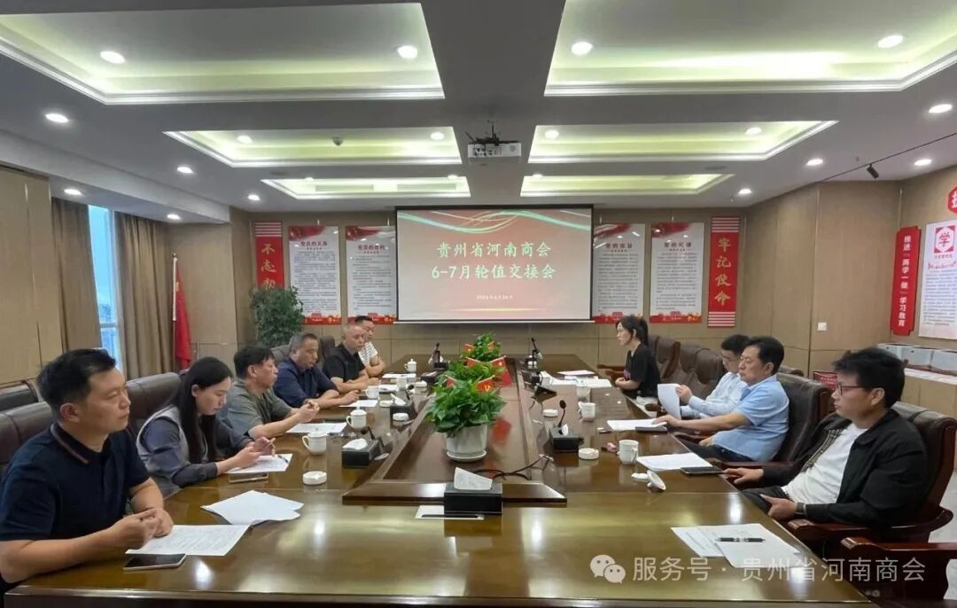 6月26日,贵州省河南商会6月—7月轮值交接会在商会会议室圆满举行。贵州省河南商会执行会长李家强、常务副会长张玉平(6月轮值会长)、常务副会长袁国辉(7月轮值会长)、秘书长侯排青、副会长乔万治、李中业、理事夏成伟、会员王长友、特邀嘉宾招商银行林城西路支行行长庄金英参加会议,会议由秘书长侯排青主持。