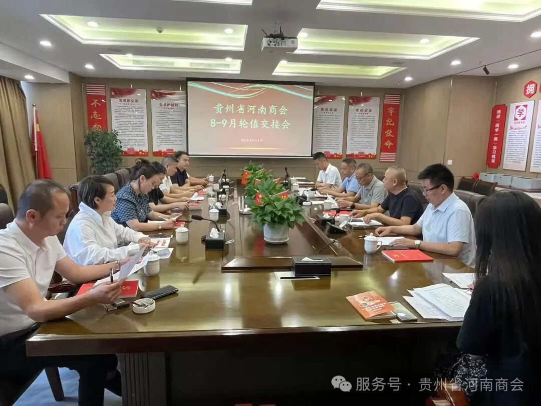9月2日,贵州省河南商会8—9月轮值交接会在俊发城28楼商会会议室圆满举行。会长王学哲,执行会长李家强,常务副会长王麒焰、李永辉,秘书长侯排青,副会长兼副秘书长孙涛,副会长陈丽杰、陈奕霏、理事王长生,会员程文,特邀嘉宾贵阳好家园家居有限公司全案总经理林娜。会议由秘书长侯排青主持。