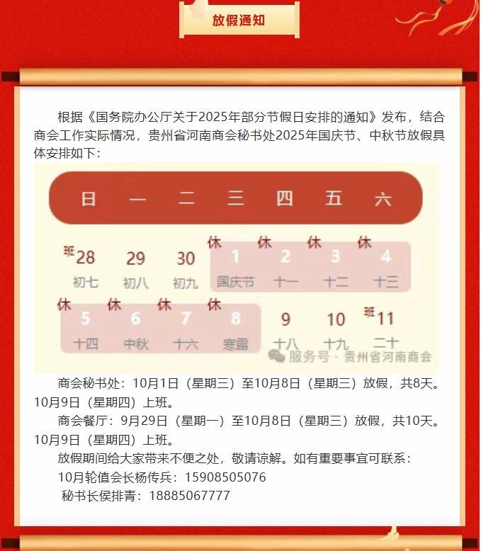 【节日祝福】贵州省河南商会祝全体会员中秋•国庆双节快乐!