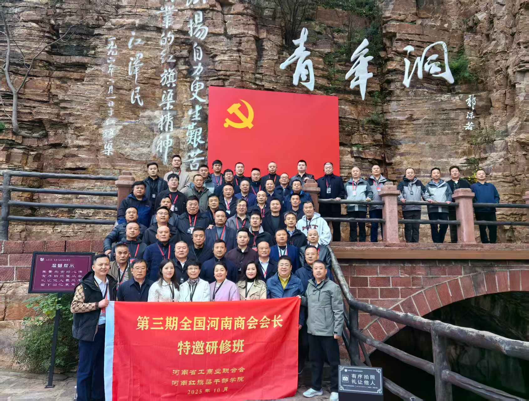2025年10月19日,第三期全国河南商会会长特邀研修班在河南红旗渠干部学院开班。贵州省河南商会会长王学哲、秘书长侯排青与来自全国各省(市)河南商会的60余位会长、秘书长一起,开启为期五天的专题研修。本次研修班围绕政策解读、商会发展路径探讨、豫商凝聚力提升展开,旨在以红旗渠精神为引领,强化豫商群体协同发展动能,推动豫商力量在新时代区域合作中发挥更大作用。