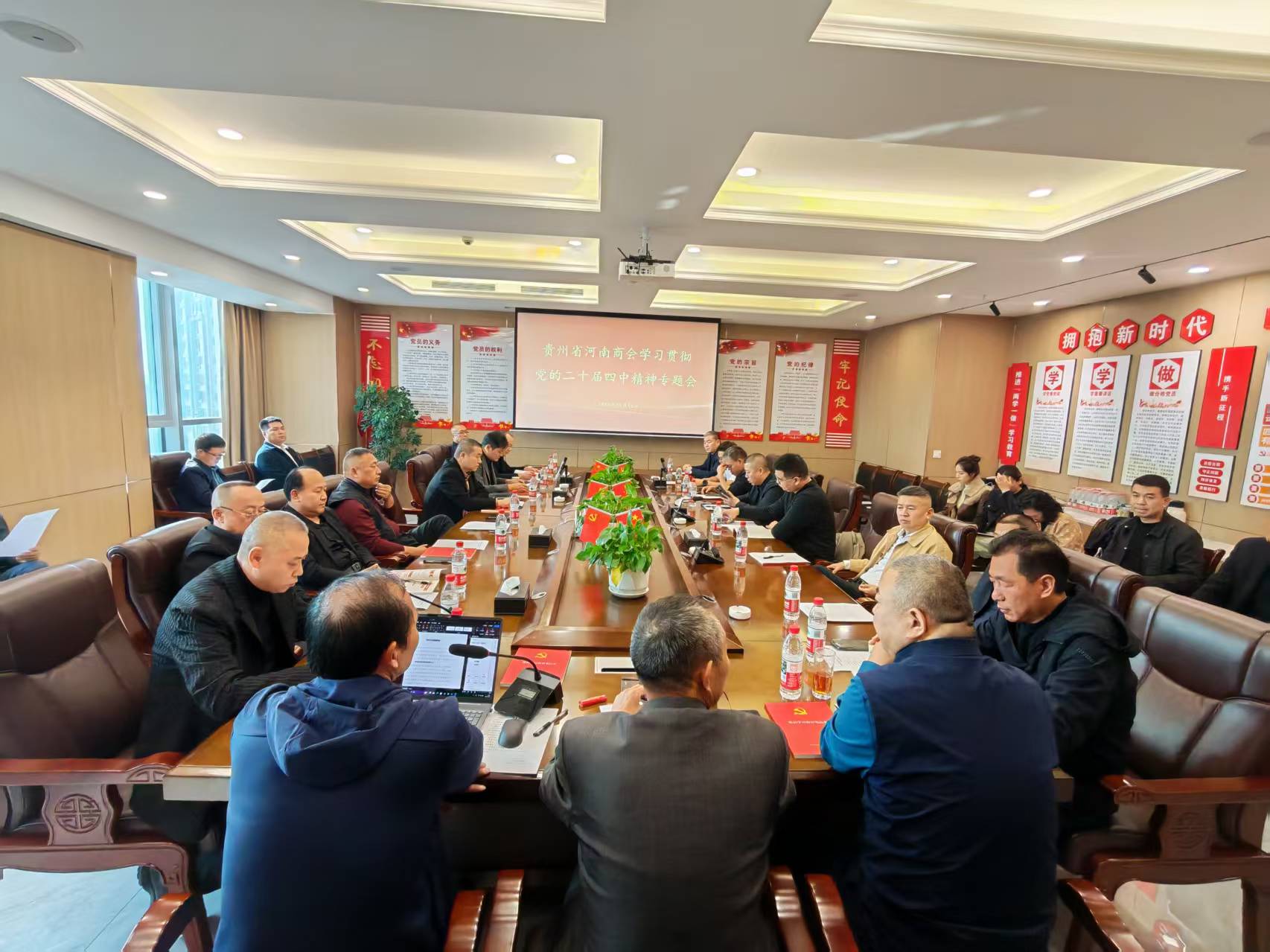 11月15日,贵州省河南商会组织开展党的二十届四中全会精神专题学习会。会长王学哲,执行会长李敬山,常务领导班子及部分会员代表齐聚一堂共学全会精神。会议特邀贵州省委宣传部原副部长耿杰作专题解读。