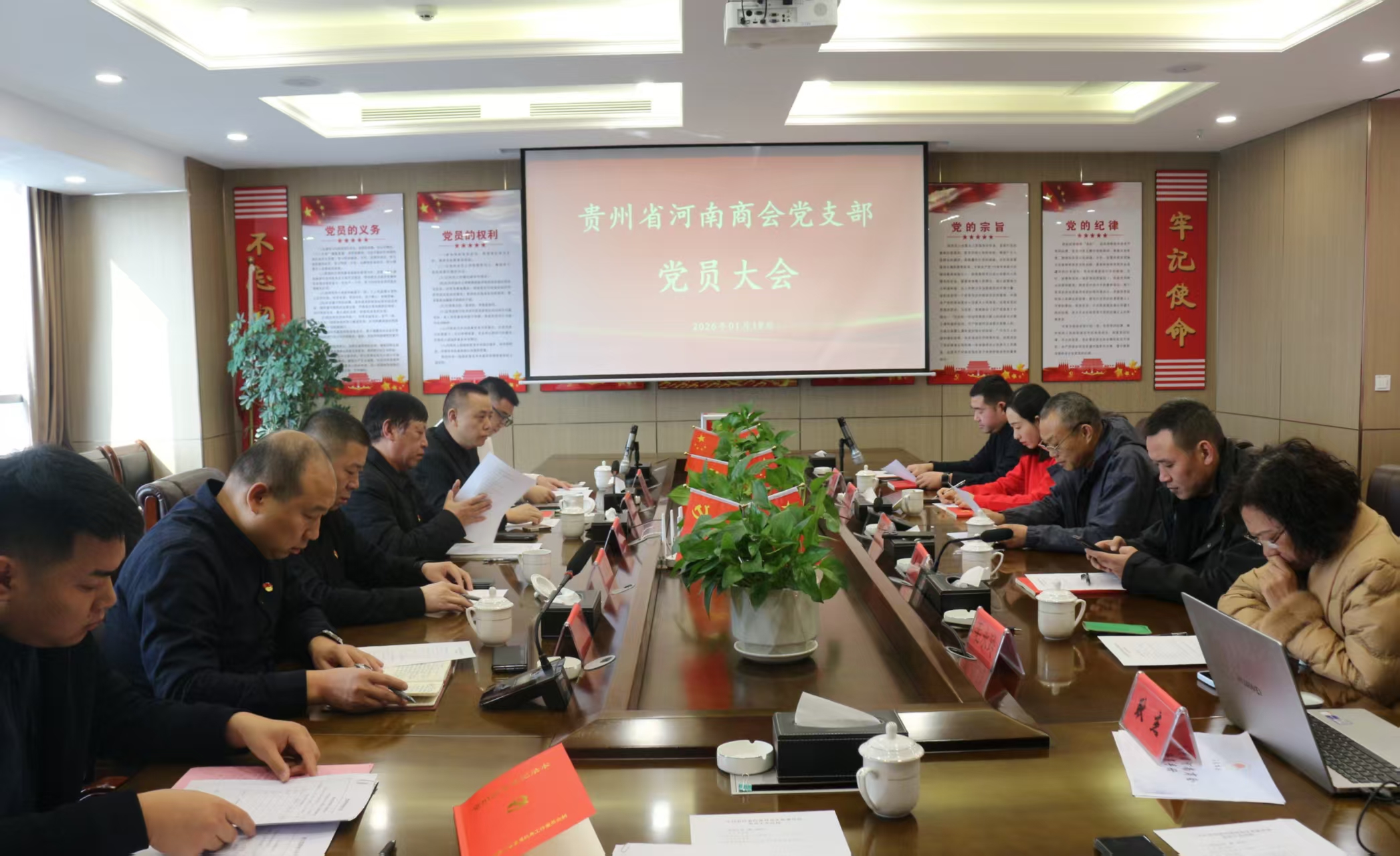 2026年01月19日,贵州省河南商会党支部党员大会在商会会议室召开。会议由王学哲同志主持。